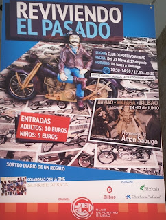 Unas fotos de la exposición, Reviviendo el pasado, en el Frontón del Club Deportivo de Bilbao, con alrededor de ochenta motocicletas clásicas.